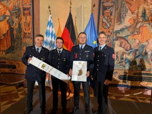 Am Freitag, 5.12.2025, durfte eine vierköpfige Abordnung der Laberweintinger Feuerwehr am Staatsempfang anlässlich der 150-Jahrfeiern der südbayerischen Feuerwehren teilnehmen. Im Kaisersaal in der Residenz in München hoben Ministerpräsident Dr. Markus Söder und Innenstaatssekretär Sandro Kirchner die Wichtigkeit der Feuerwehren und den Stellenwert des Ehrensamtes hervor. Nach dem offiziellen Teil gab es für die ca. 1000 Kameradinnen und Kameraden eine kleine Stärkung. Als Erinnerung erhielte jede Wehr eine Urkunde sowie ein Fahnenband des Ministerpräsidenten. Die Feuerwehr bedankt sich sehr herzlich für