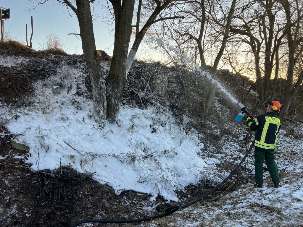 Neues Jahr, neue kuriose Einsätze. So kam es heute Nachmittag (03.01.2026, 15:20 Uhr) zu einem Böschungsbrand. Solche Einsätze kennt man bei der Feuerwehr eher aus den heißen und trockenen Hochsommermonaten. Im Januar, bei Temperaturen um den Gefrierpunkt und feiner Schneedecke, sind sie doch eher selten.