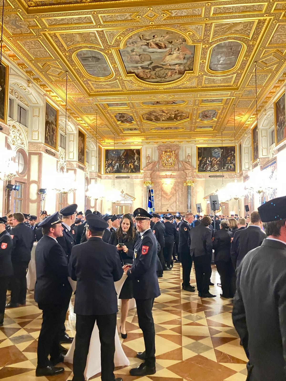Am Freitag, 5.12.2025, durfte eine vierköpfige Abordnung der Laberweintinger Feuerwehr am Staatsempfang anlässlich der 150-Jahrfeiern der südbayerischen Feuerwehren teilnehmen. Im Kaisersaal in der Residenz in München hoben Ministerpräsident Dr. Markus Söder und Innenstaatssekretär Sandro Kirchner die Wichtigkeit der Feuerwehren und den Stellenwert des Ehrensamtes hervor. Nach dem offiziellen Teil gab es für die ca. 1000 Kameradinnen und Kameraden eine kleine Stärkung. Als Erinnerung erhielte jede Wehr eine Urkunde sowie ein Fahnenband des Ministerpräsidenten. Die Feuerwehr bedankt sich sehr herzlich für die Einladung zu diesem einzigartigen Event!